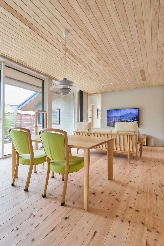 木材にかこまれた空間で過ごしていると、心が和み、落ち着きます。また屋外の気温・湿度差をやさしく吸収してくれるのも、木材壁面の良さです。